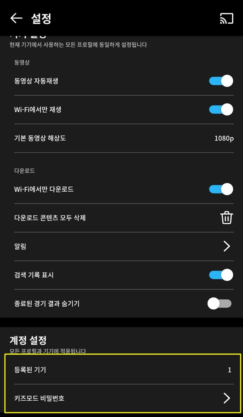 - 키즈 모드 : 쿠팡플레이 잠금기능을 이용해 아이들 시청보호 안심 기능 설정 가능