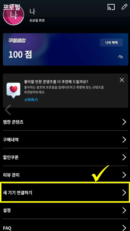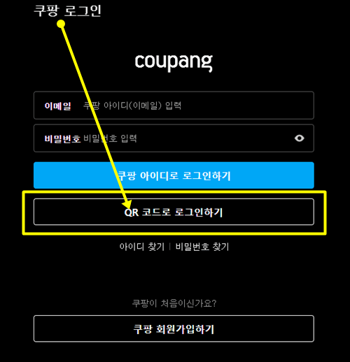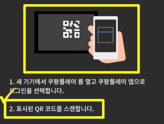 👉 TV 쿠팡 플레이 화면 로그인 - QR 로그인 - 휴대폰 프로필 화면 - 새기기 연결 -QR 스캔